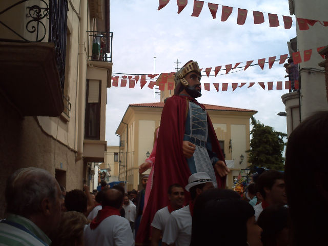 A la 1 de la tarde hubo pasacalles con la charanga, los gigantes y cabezudos por la calle mayor con todos los niños y sus padres, que disfrutaban viendo a los pequeños bailar y escapar de los cabezudos evitando el golpe.