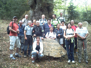 La bajada se hizo por otro camino distinto al de la subida para visitar un roble milenario, donde se hicieron las fotos del grupo como de costumbre en todas las salidas. El resto del camino hasta el pueblo fue un paseo muy agradable disfrutando del paisaje.