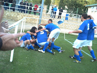 La foto nos muestra el penalty lanzado por charly, que consigue el primer gol.
