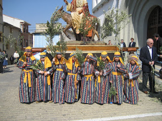 montado en la burra, recordando aquella triunfal entrada de Jesucristo montado