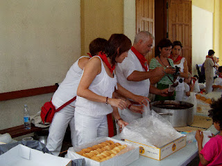 con pastas junto a los niños y niñas del pueblo y sus familiares. A las 12 del