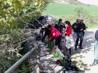 margen izquierda y otros subiendo por un ribazo algo peligroso para coger un