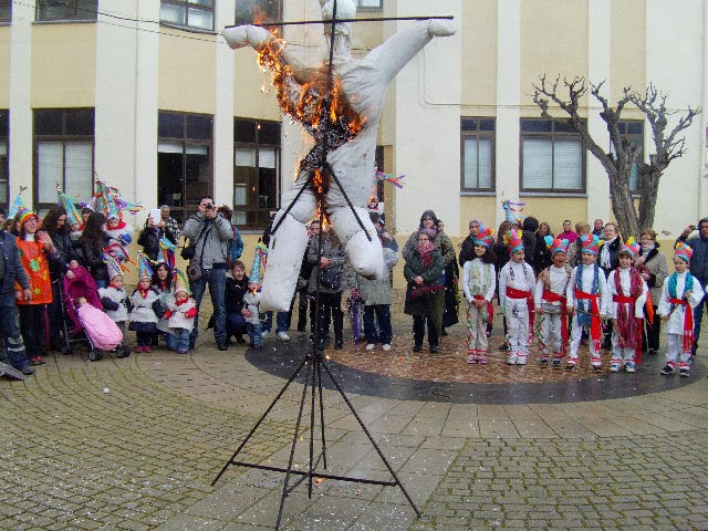 el patio donde se quemó el muñeco de carnaval. Finalizaron los bailes con un paloteado a cargo de los alumnos del Tercer Ciclo de Educación Primaria.