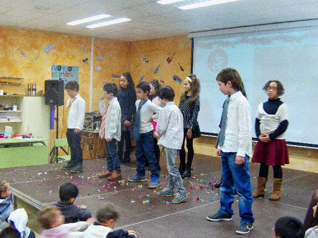 Los alumnos de cuarto cantando y bailando canciones típicas de Navidad.