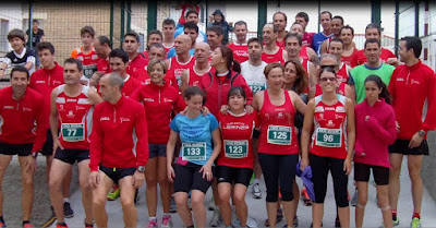 Todos los corredores de Lerín en la carrera de adultos, posando delante de la cámara momentos antes del inicio de la carrera.