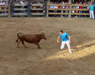 Miguel Ruiz momentos antes de la cogida sufrida en Lerín que le cotó la muerte por la grave cogida que sufrió en la participación del concurso de recortes en las fiestas de Lerín de Navarra.