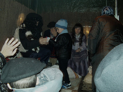En la foto la carroza del Olentzero con sus acompañantes, esperando la llegada de los niños y niñas para saludarlos y entregarles un regalo.