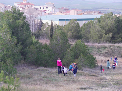 En la foto se ve a los alumnos de Infantil con las profesoras dirigiéndose al campo de fútbol para merendar.