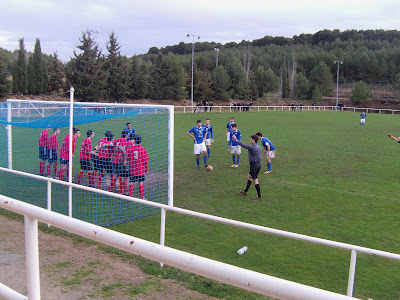 En la foto otra clarísima ocasión de gol para los locales en la segunda parte. Una falta indirecta dentro del área pequeña con todos los jugadores del Injerto protegiendo su portería para evitar el tanto del Lerinés, que falló el gol incomprensiblemente.