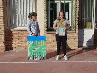 reparto de premios dirigido por Isabel Chocarro en la megafonía que se realizó en el patio escolar, con masiva