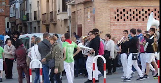 Txaranga por la calle Mayor con parada en todos los bares.