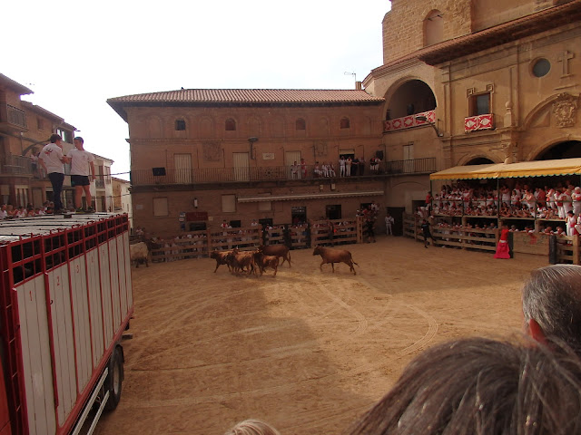 pierna, llevado en ambulancia al hospital de Estella. Las vaquillas en la plaza