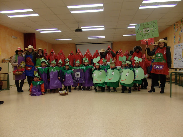 Alumnos de Infantil disfrazados de manzana, berenjena y
