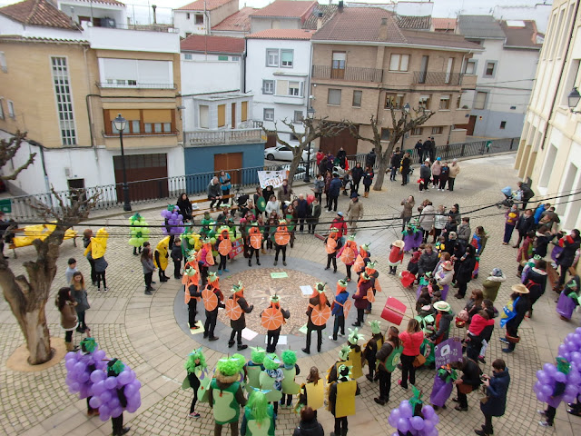 Los alumnos de 5º de Primaria salieron disfrazados de Naranja y los alumnos de sexto desfilaron representado a la uva.