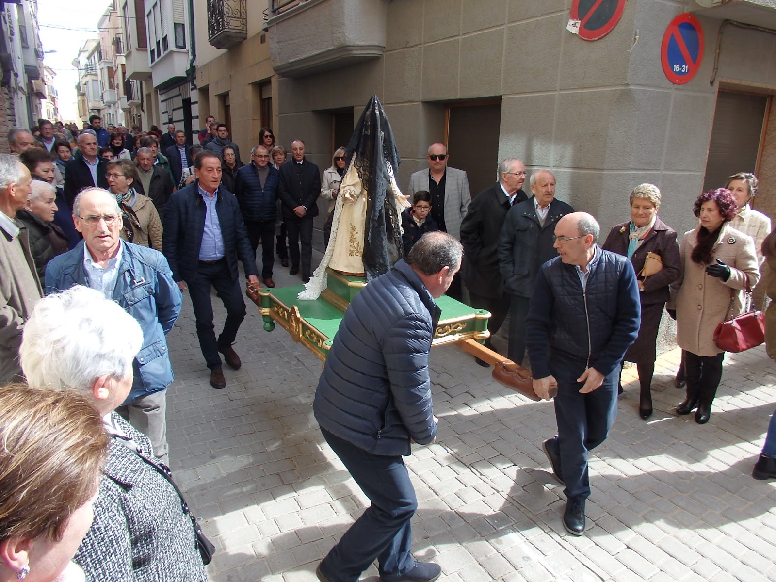 (señal de luto) y queda con el manto blanco. Reunidos el hijo y la madre comienza la procesión por la calles Tahona,