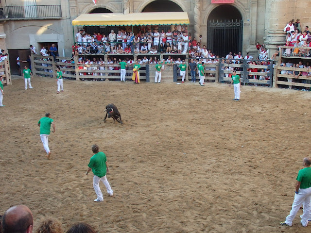 Por la tarde hubo recortes con las vacas bravas en la plaza para recoger fondos de ayuda en la lucha contra el cáncer, participando muchos recortadores de la comarca.