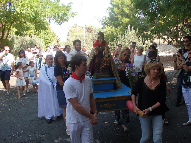 a la Virgen por el recorrido hasta la ermita y un grupo numeroso de fieles