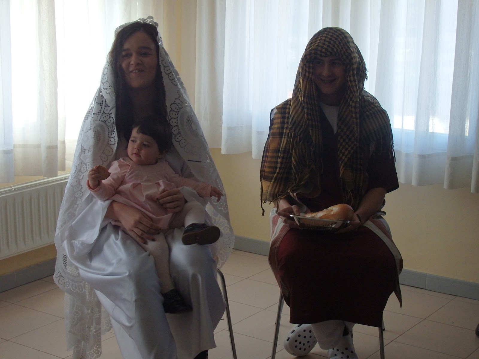 La Hermana Maria Luisa dirigió el evento religioso de esta pequeña obra teatral y el resto de las hermanas religiosas participaron de la obra, igualmente todas las trabajadoras. Amaya y Sofi hicieron de presentadoras y todas las trabajadoras participaron en la representación del acto de la Navidad. Los ancianos y ancianas residentes participaron del acto cantando y aplaudiendo las actuaciones.