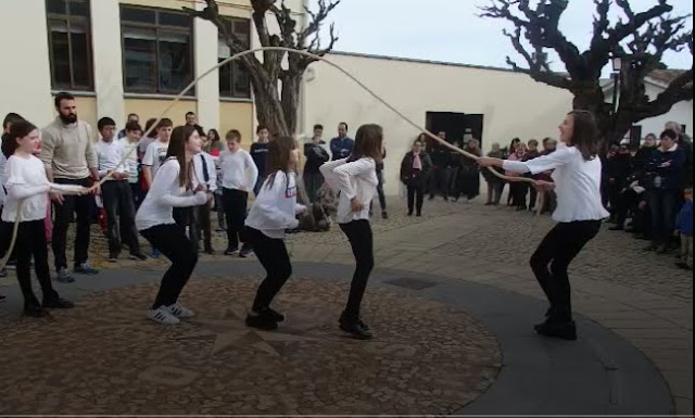 6º de Primaria del salto con cuerda en el patio cercano a la sala de música. Al