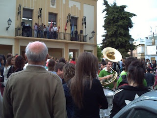 La banda de música interpreta canciones durante el aperitivo que dio el Ayuntamiento a la 1 de la tarde para todos los vecinos.