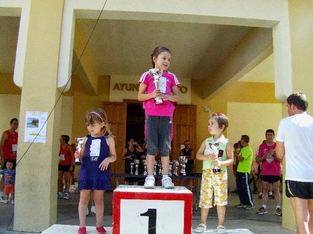 puede ver a los cuatro vencedores de la carrera "Vuelta al Pueblo" subidos en el podio, De izquierda a derecha: Alberto Moral, Laura Maestu,